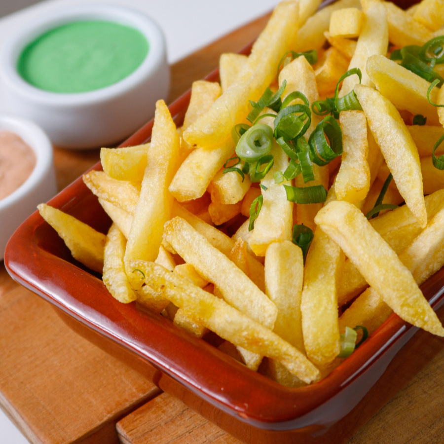 ( pode sofrer alteração no peso pois frito perde densidade) Porção de fritas sequinha, acompanhada de dois molhos a sua escolha, Servindo 2 pessoas 🥰