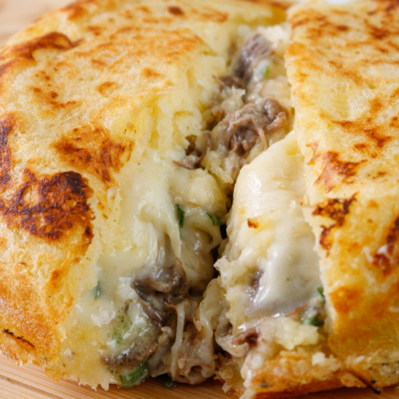 Carne de sol, Requeijão cremoso, mozarela, molho secreto, cheiro verde (cebolinha).