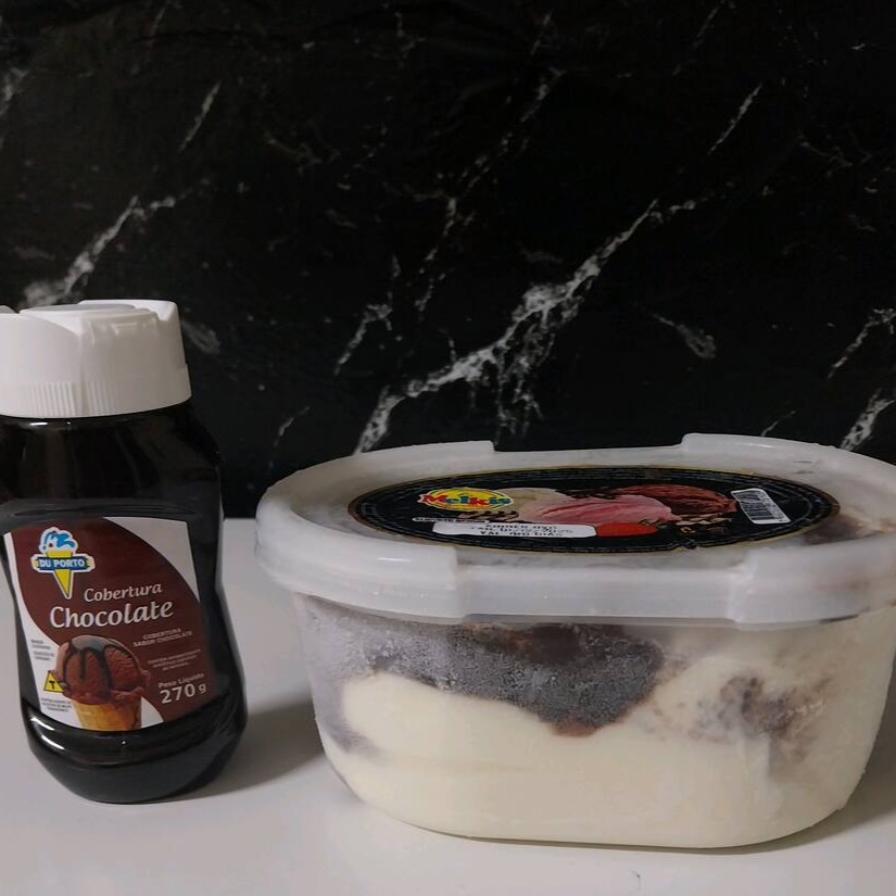 Pote de sorvete 01 litro e cobertura de chocolate 270 grama