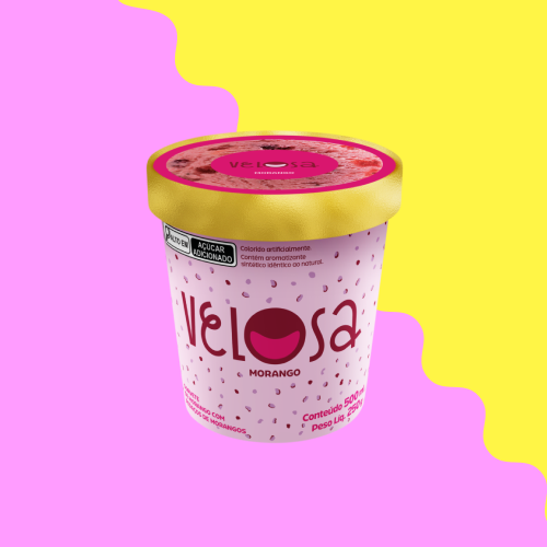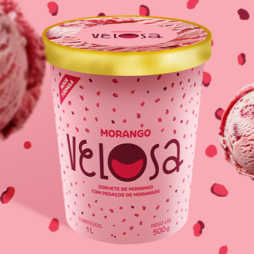 Sorvete de morango com pedaços selecionados da fruta dando um toque de frescor ao sabor.