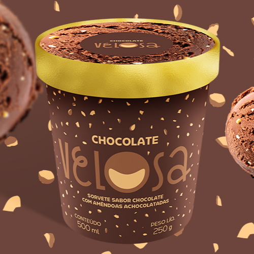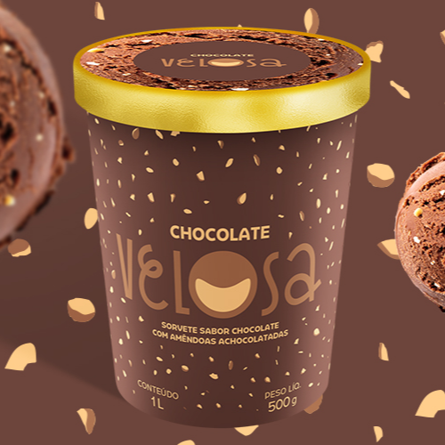 Sorvete de chocolate delicioso finalizado com o requinte de amêndoas achocolatadas.