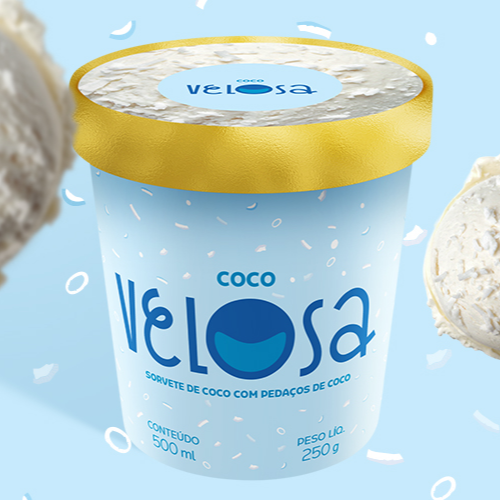 Sorvete de coco com leveza e cremosidade, e a textura envolvente de pedaços de coco