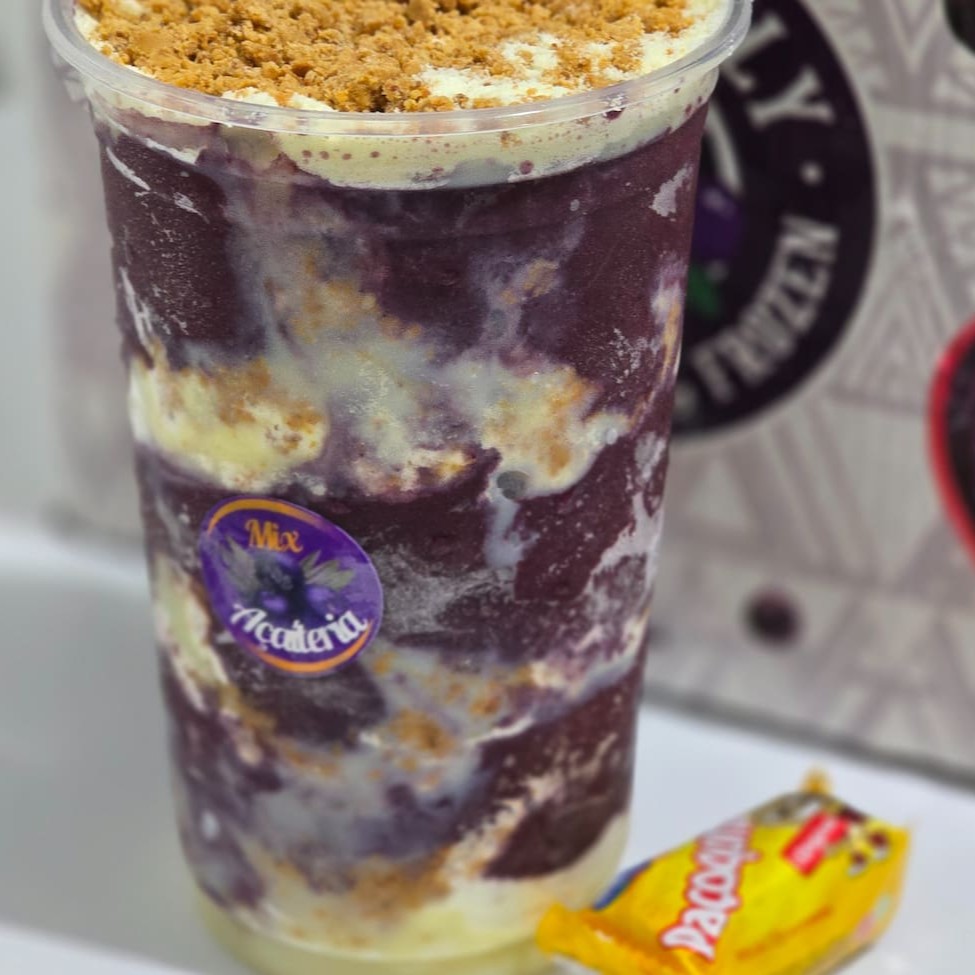 Açaí tradicional + Leite condensado + Leite em pó + Paçoca em rolha