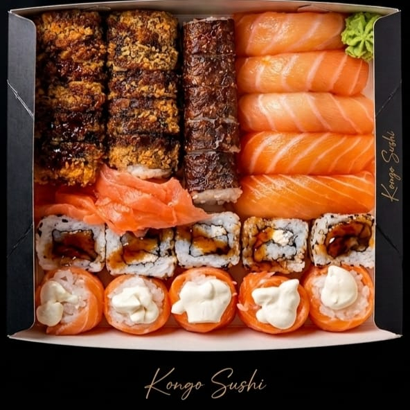10 Hossomaki salmao cru,10 uramaki kani ,10 hossomaki salmao grelhado 5 joy salmao com salmao batido 5 sashimi 5 nigiri salmao 15 hot