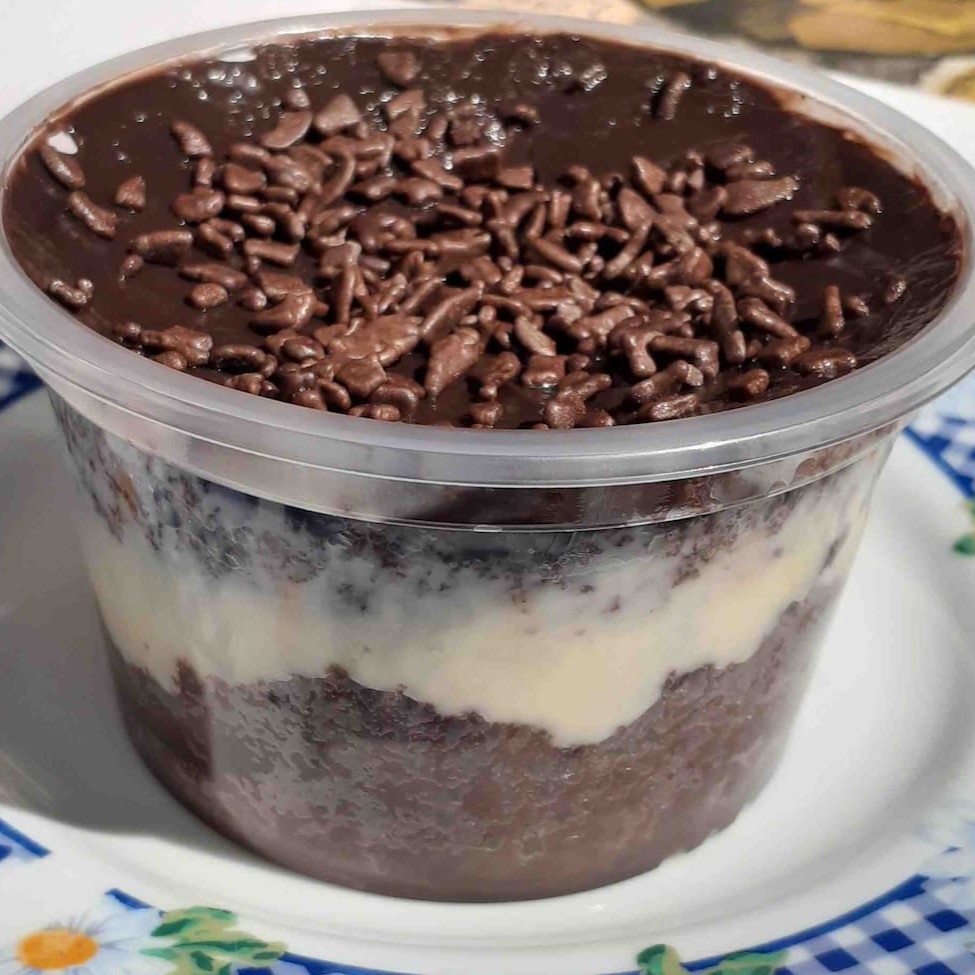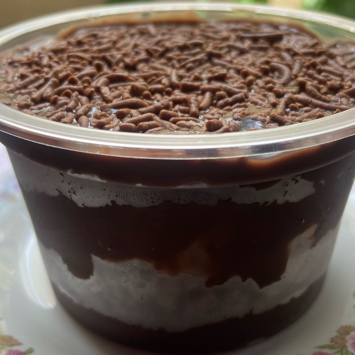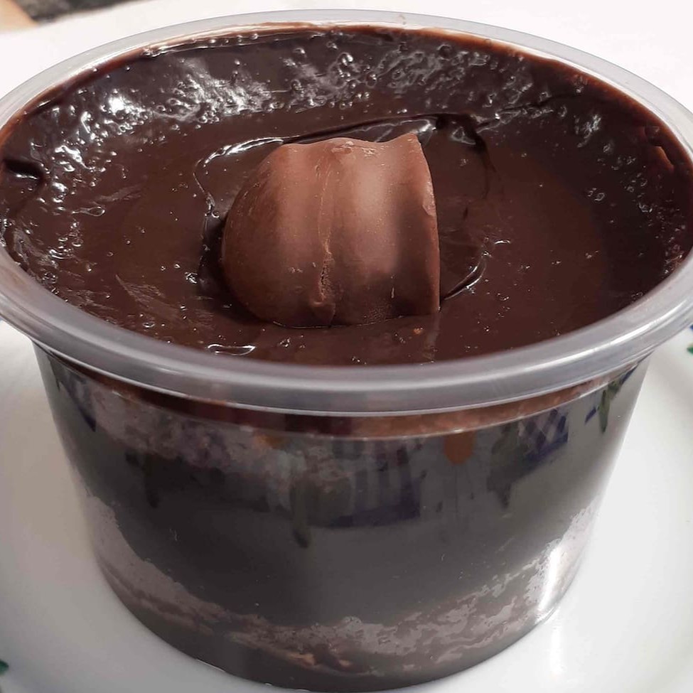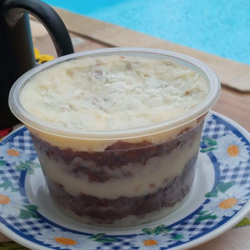 Brigadeiro de Coco com bolo de chocolate. (230g de Bolo).
