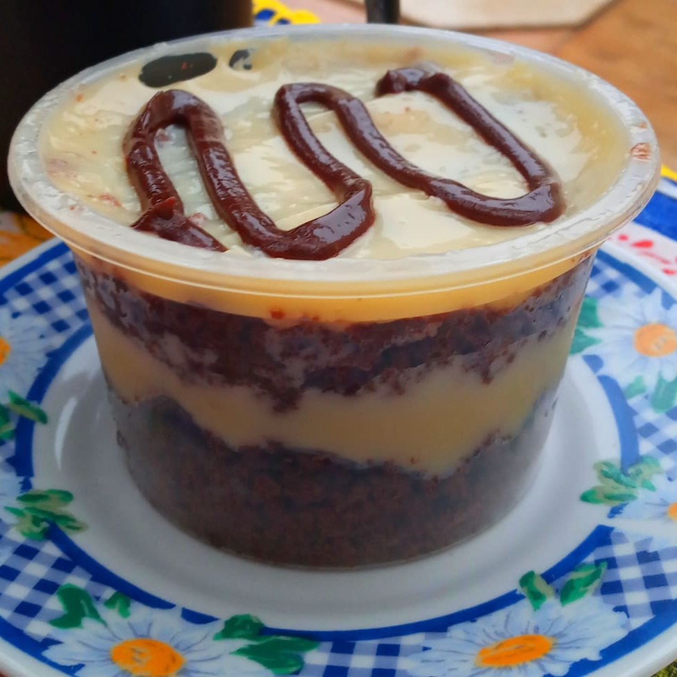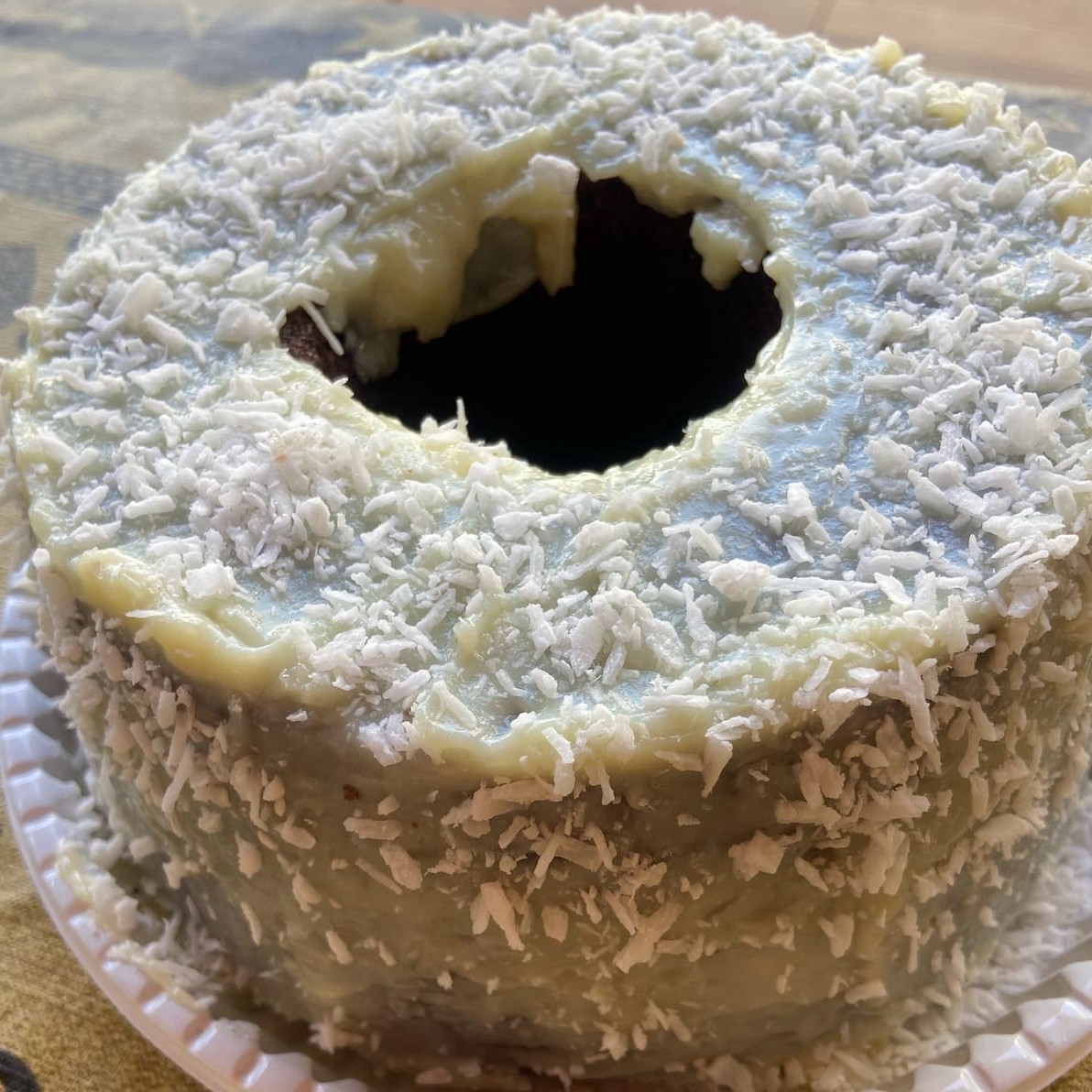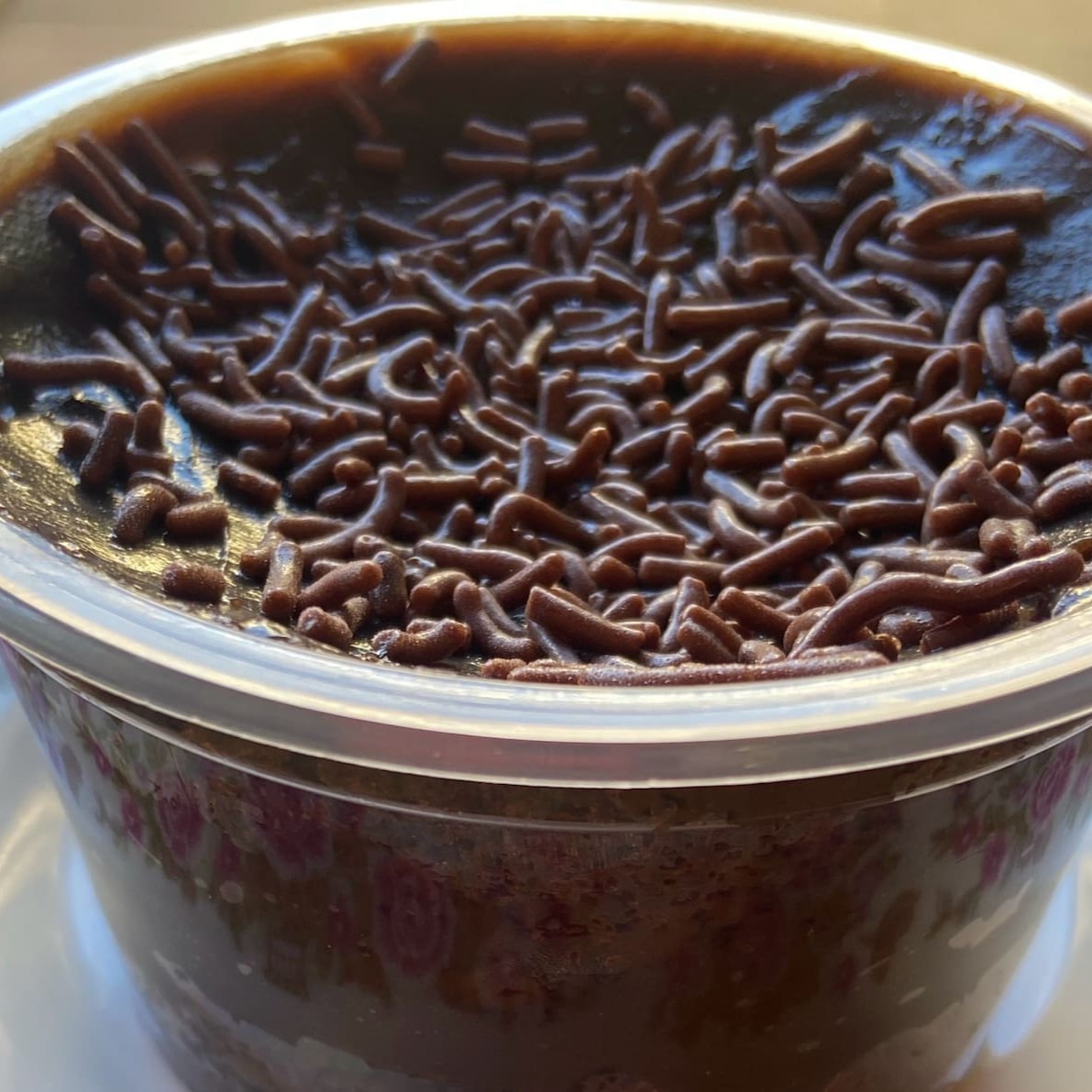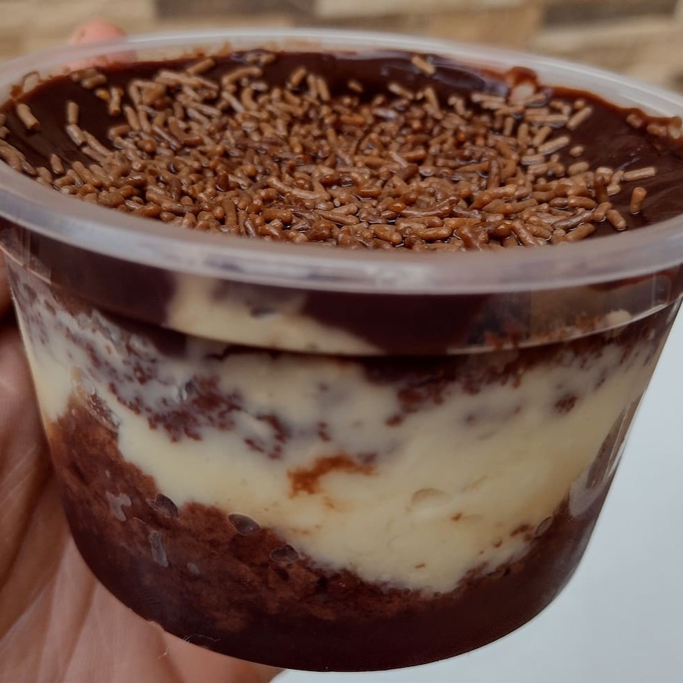 Brigadeiro de Coco com bolo de chocolate. (230g de Bolo).