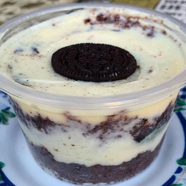 Bolo de chocolate, com creme de chocolate. Massa : farinha, açúcar, cacau em pó, leite de soja, óleo e fermento em pó. Recheio Creme de chocolate Leite de soja, açúcar, cacau em pó e amido de milho. (230g)
