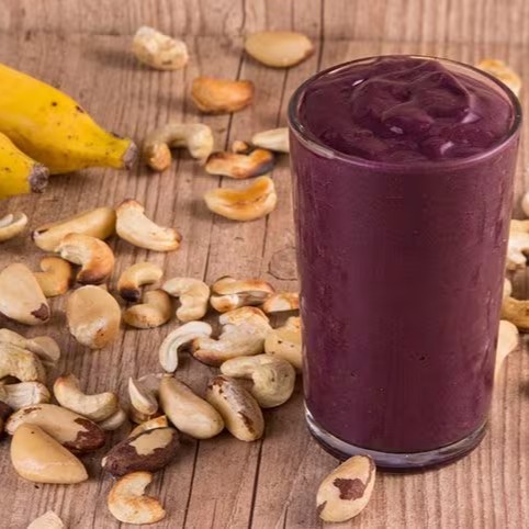 Açaí, laranja, xarope de Guaraná, Catuaba, banana, Guaraná em pó, ginseng, aveia e granola.