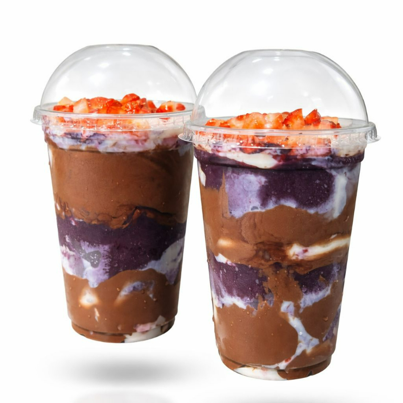 2 deliciosos copos de açai cremoso, recheado com nutella, morango e leite condensado