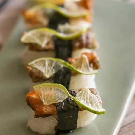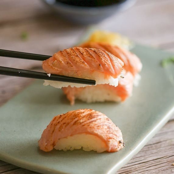 Sushi flambado no maçarico