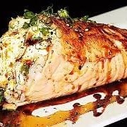 Skin grelhado, cream cheese, enrolado com alga por dentro