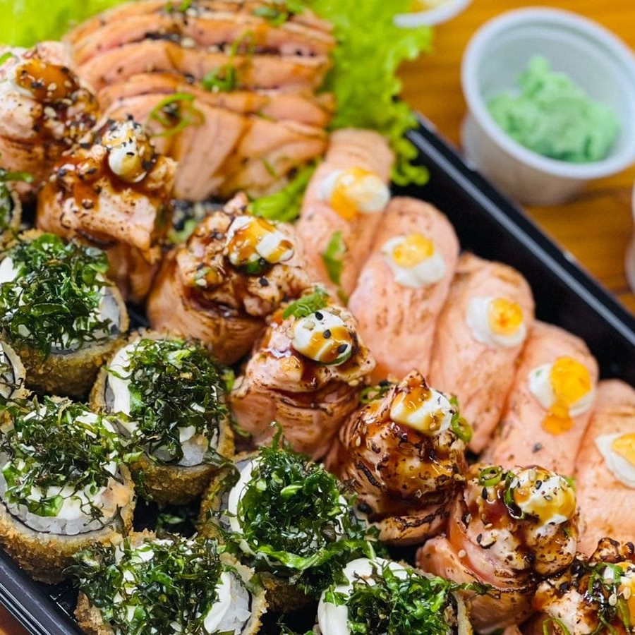 20 Hot Roll Salmao 10 peças de sushi variadas