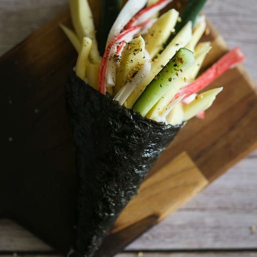 Manga pepino e kani, enrolado com alga por dentro