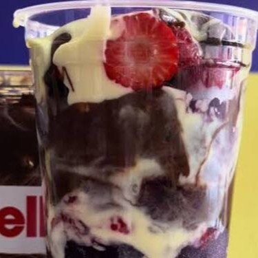 Açaí montado com leite condensado moça, leite em pó Ninho, Nutella e morango