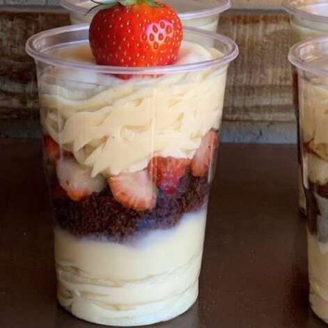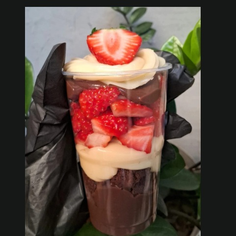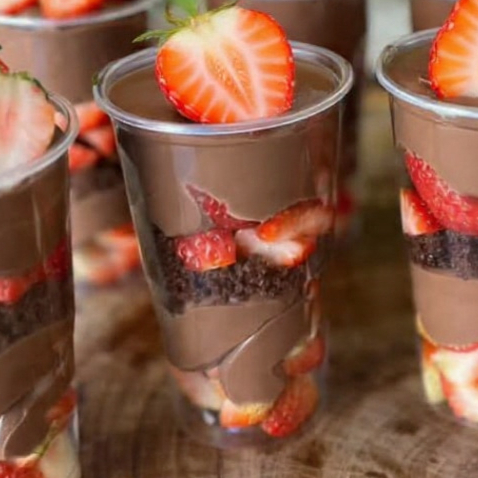 creme de chocolate, morango e bolo de Chocolate. 250 ml