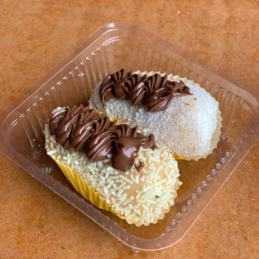 Casca de chocolate ao leite, recheada com creme de ninho e brigadeiro belga cremoso e brigadeiro tradicional, criando uma combinação de sabores intensos e textura irresistivel.