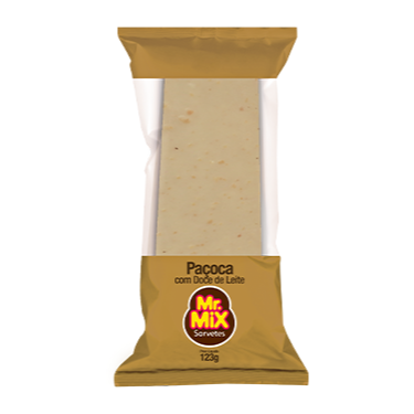 Nossa paleta é feita artesanalmente com a verdadeira Paçoquita e recheada com doce de leite caseiro.