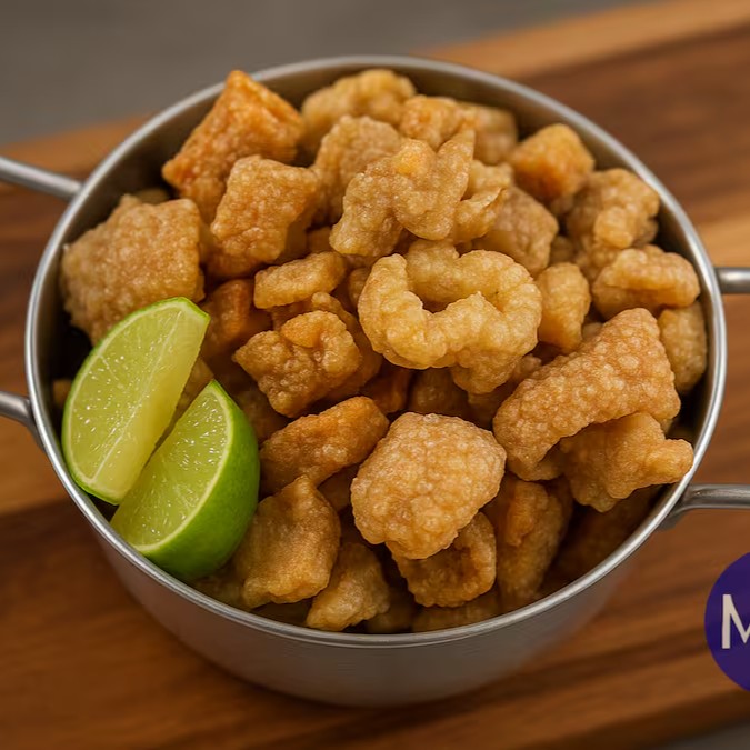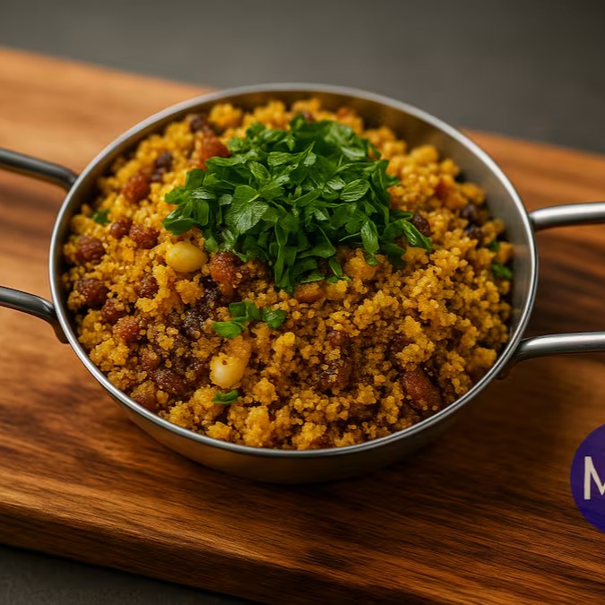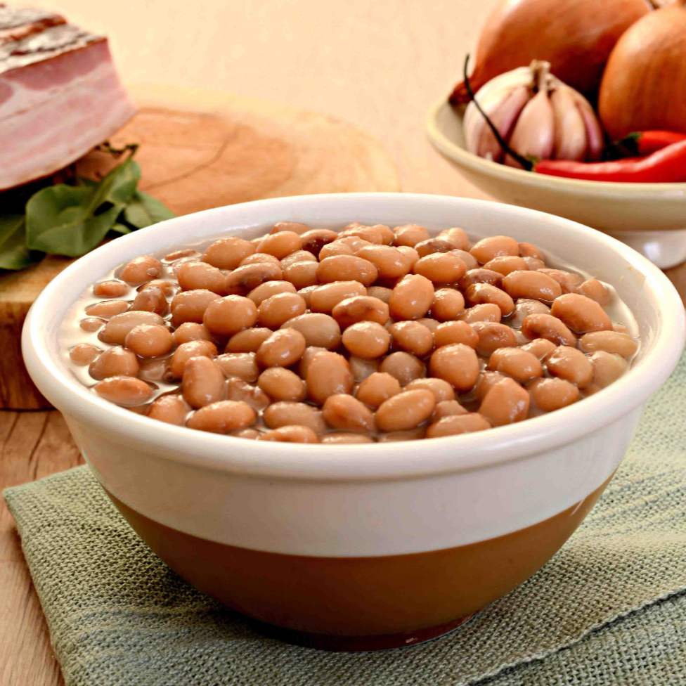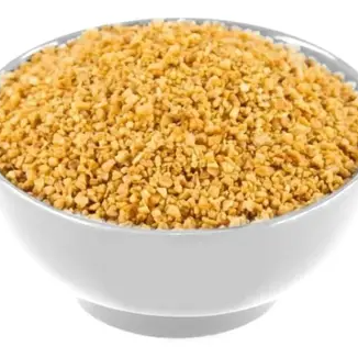 Farinha de mandioca, bacon, calabresa, torresmo e feijão fradinho.