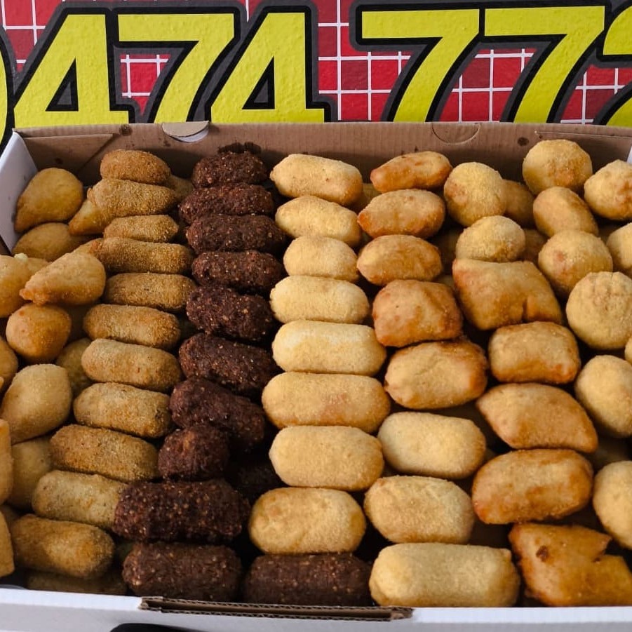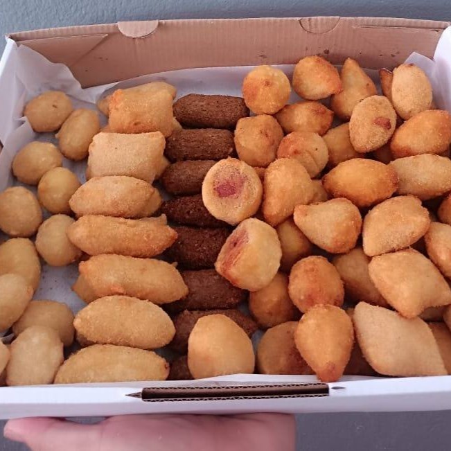 100 Salgados Fritos Diversificados Delicie-se com a nossa seleção irresistível de 100 salgados fritos fresquinhos e crocantes! Cada unidade é feita com ingredientes de qualidade, trazendo o sabor perfeito para seu Dia. Temos uma variedade de opções