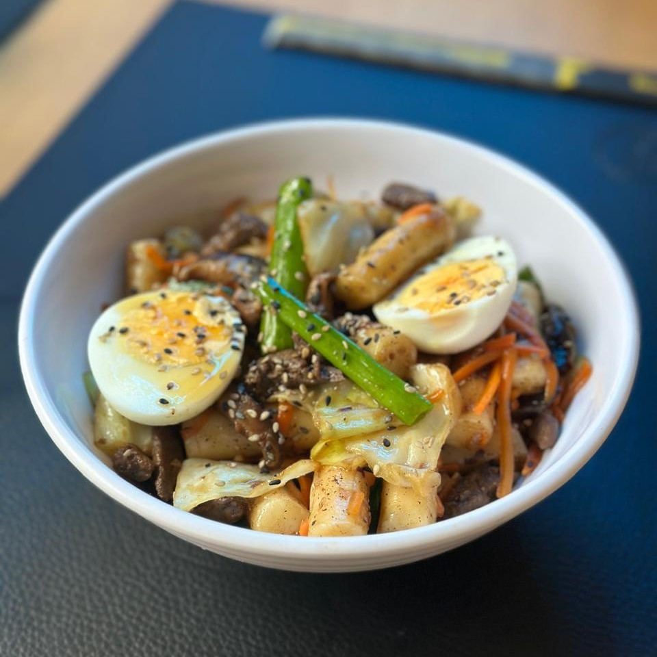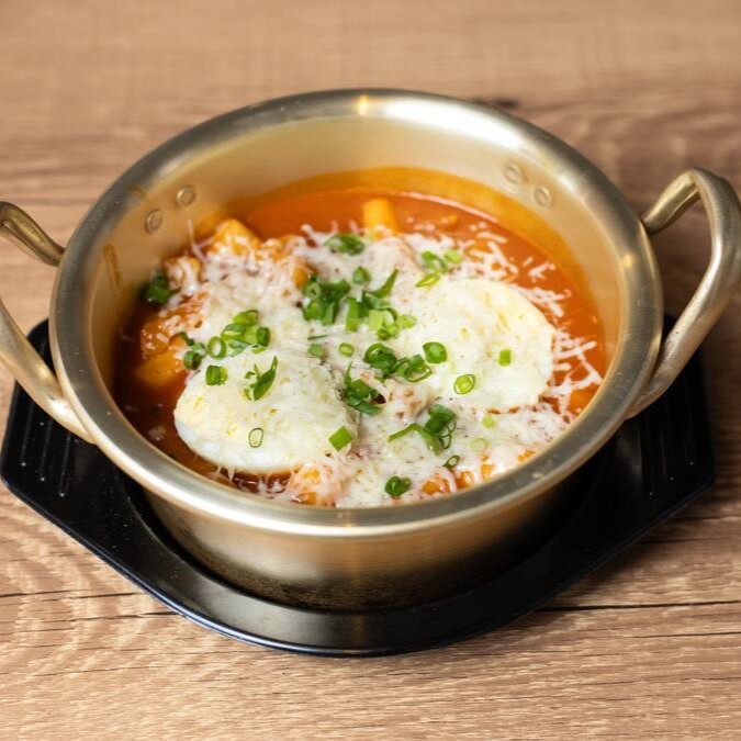 Prato popular coreano feito de bolinho de arroz, pimenta coreana, massa de peixe, ovo cozido, finalizado com cebolinha e queijo. 🌶️🌶️🌶️