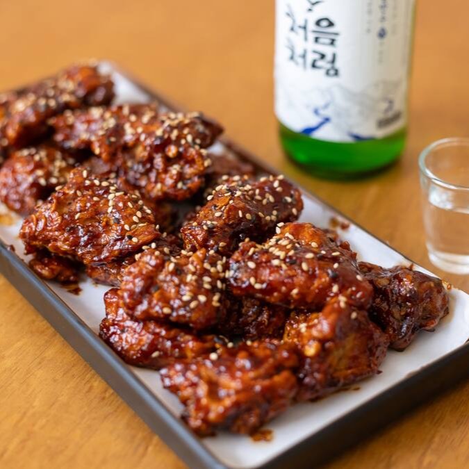 Deliciosos pedaços de peito de frango crocantes. Metade salteado com molho apimentado agridoce (🌶️🌶️🌶️) e a outra metade sem o molho de pimenta. Acompanha maionese da casa.