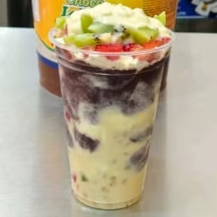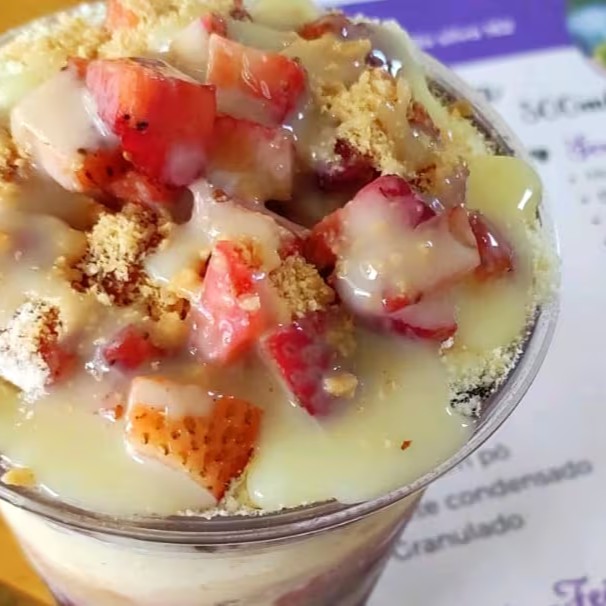 Copo de 300ml cada. Açaí com 4 acompanhamento, banana, leite condensado, leite em pó e paçoca. Milk Shake de morango ou Ovomaltine
