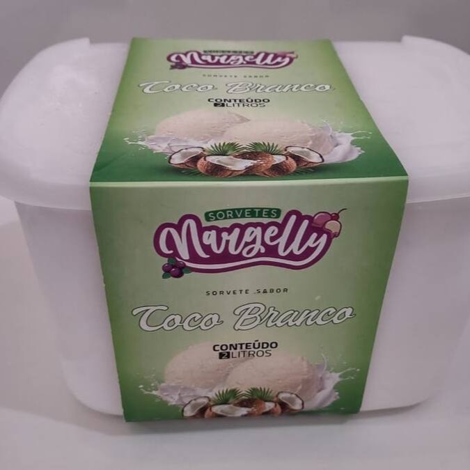 Sorvete de coco branco com recheio de chocolate branco, castanha de caju e coco