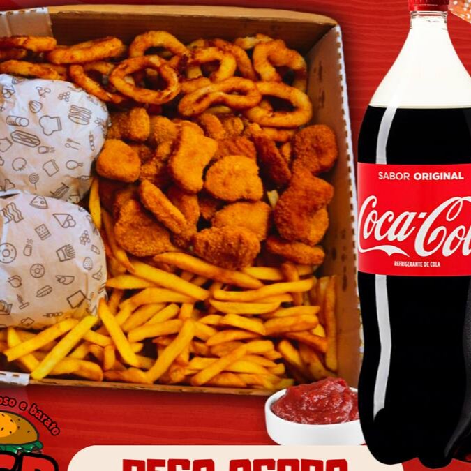 Deliciosa Burgerinbox 2 Lanches + Batata + Onion Rings + Nuggets + 1 Coca Cola 1,5