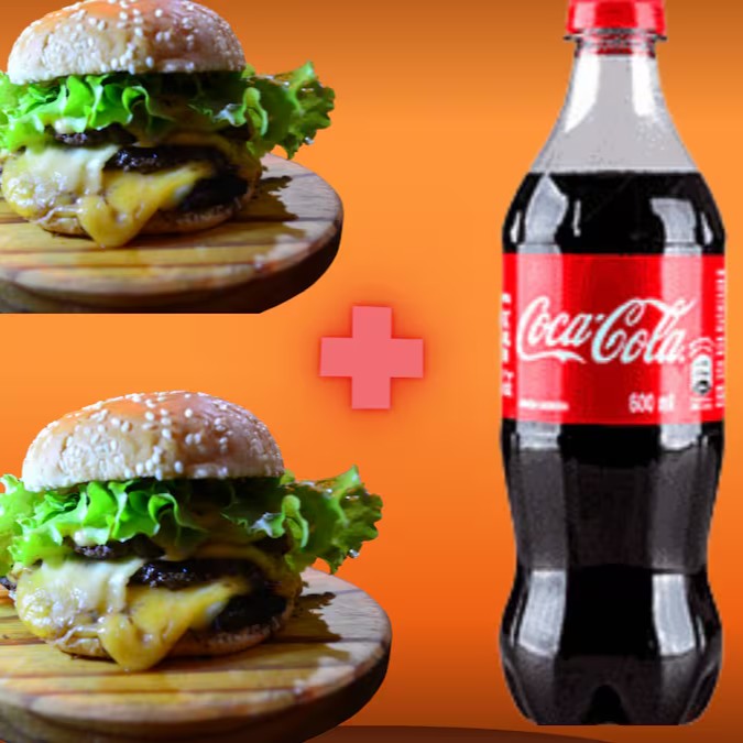 Dois X-Salada suculentos, com aquele queijo derretendo, o bacon crocante e o pão macio — acompanhados de uma Coca bem gelada pra fechar com chave de ouro!