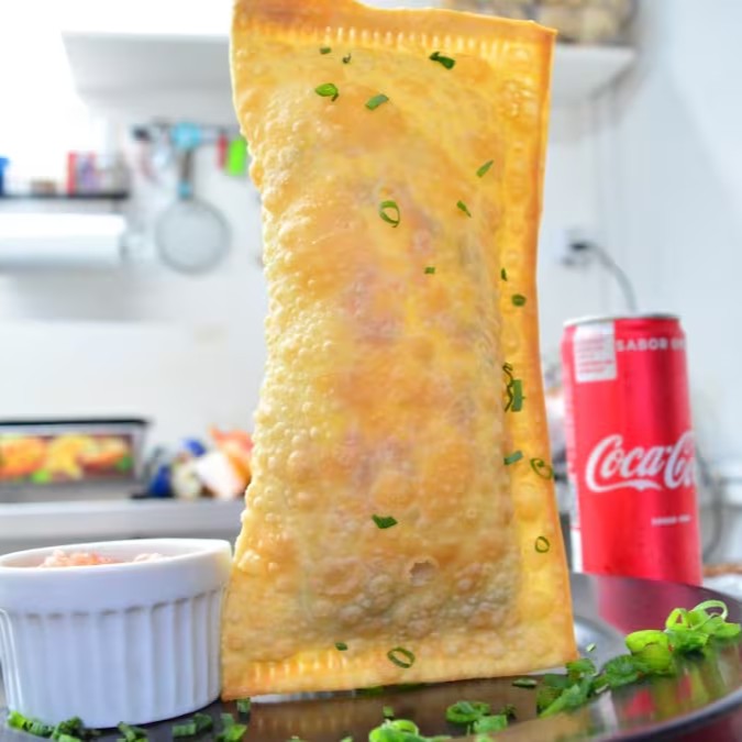 Delicioso e bem fritinho, Pastel da Casa recheado com Frango desfiado temperadinho, com Catupiry