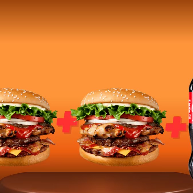 Hambúrguer 3 carnes + Coca 600 ml — pede o teu e sente o impacto!