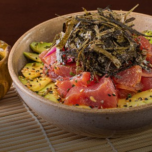 Cubos de atum temperados com molho agridoce picante, arroz japonês temperado, cortes de abacate, cebola roxa cortada finamente e gergelim (400gr). *Obs.: não acompanha hashi, berço, shoyu, wasabi e gengibre.