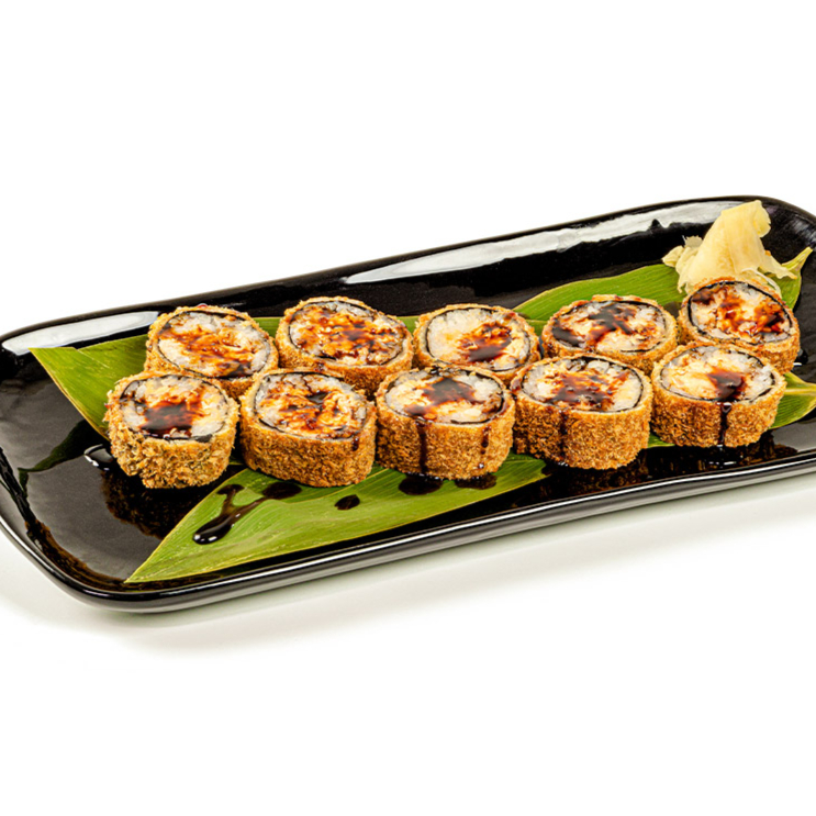 10 unidades de sushi empanado e frito recheado com salmão assado e cream cheese. Acompanha molho tarê. *Obs.: não acompanha hashi, berço, shoyu, wasabi e gengibre