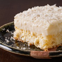 Bolo branco fofinho acompanhado de uma cobertura de creme e coco Opção deliciosa, leve e fofinha. Receita que atravessa gerações e conquistou nossos clientes!
