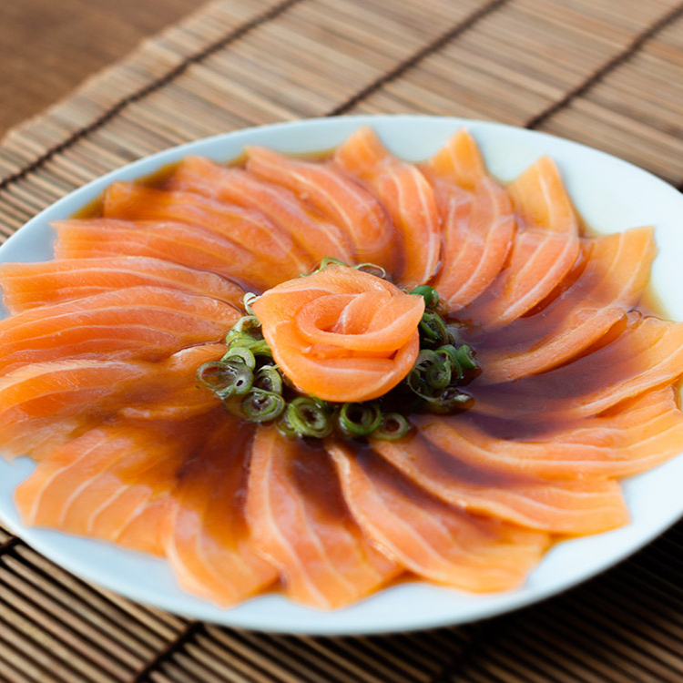 Porção de 100gr de finas fatias de salmão servidas com cebolinha e molho citrico ponzu. *Obs.: não acompanha hashi, berço, shoyu, wasabi e gengibre.