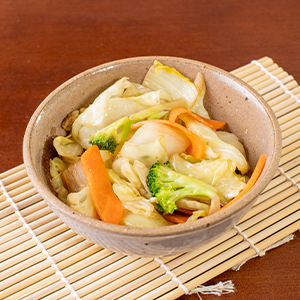 Mix de acelga, brócolis, cenoura, couve-flor e repolho refogados a moda oriental (150gr). Obs.: Não acompanha hashi