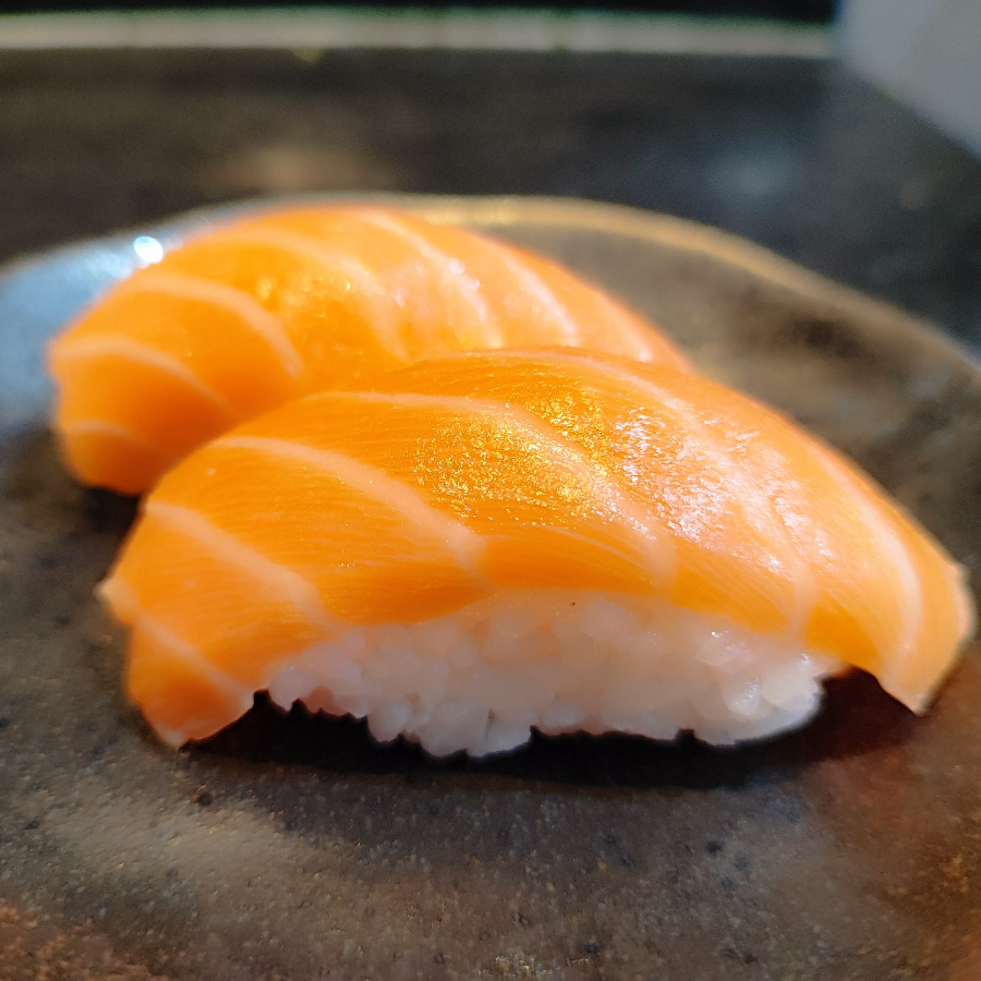 2 unidades de Niguiri de Salmão *Obs.: não acompanha hashi, berço e shoyu