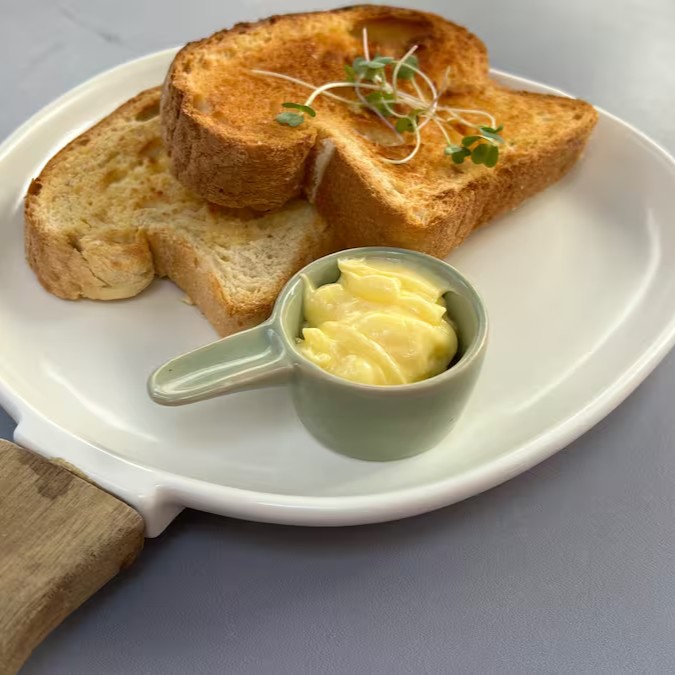 Desfrute de duas fatias de pão vegano esplendidamente tostadas, cuidadosamente preparadas no mais puro azeite de oliva. Este 'Toast Vegano' é o destaque do nosso cardápio de Café da Manhã e Brunch, trazendo um sabor inigualável que irá encantar os seus sentidos. A crocância perfeita e o toque suave do azeite dão vida a este prato simples, mas cheio de personalidade. Ideal para iniciar o seu Dia de maneira leve e deliciosa!