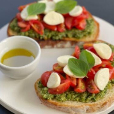 Deguste a icônica 'Bruschetta Caprese', uma famosa criação italiana que une o frescor do tomate, a suavidade da muçarela de búfala e o sabor marcante do manjericão. Aprecie essa combinação perfeitamente harmonizada sobre o nosso pão de fermentação natural, cuidadosamente torrado para realçar a textura e o sabor. Para um toque extra de sofisticação, adicionamos um suave pesto de rúcula que envolve o paladar com suas notas picantes. O prato é servido com duas fatias generosas, preparadas com a máxima atenção aos detalhes para proporcionar uma experiência gastronômica verdadeiramente memorável.