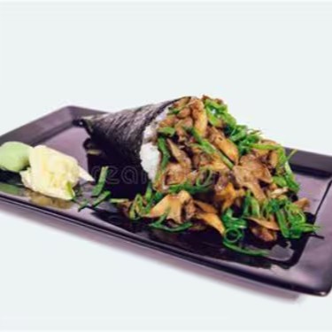 Temaki de Salmão com creme chease, arroz japonês e cebolinha.