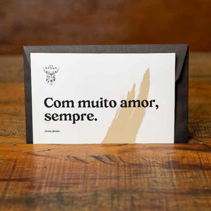 Contém: Envelope preto, carta e adesivo New Brown.