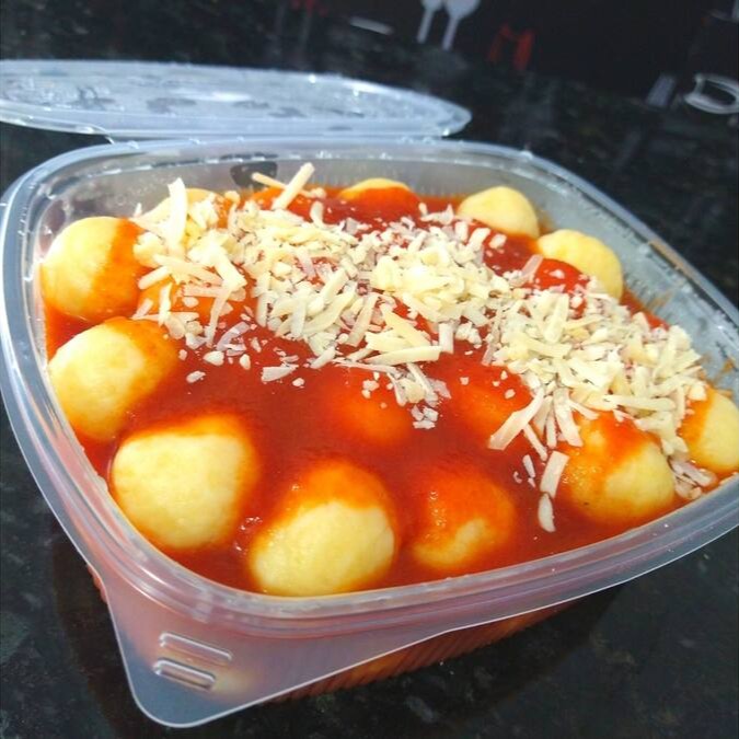 Massa fresca de batata com mandioca, bem levinho e apetitoso , acompanha um delicioso molho artesanal , serve em média 4 pessoas. Só aquecer no microondas na própria forma de 3 a 4 minutos ou no forno 20 minutos (travessa adequada) Não Enviamos Pratos Pré Aquecidos