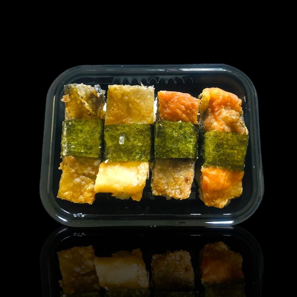 2 gunkan shimeji 2 gunkan Doritos 2 gunkan colve crispy 2 gunkan batata crispy 2 gunkan de pimenta sriracha 2 gunkan tofu empanado