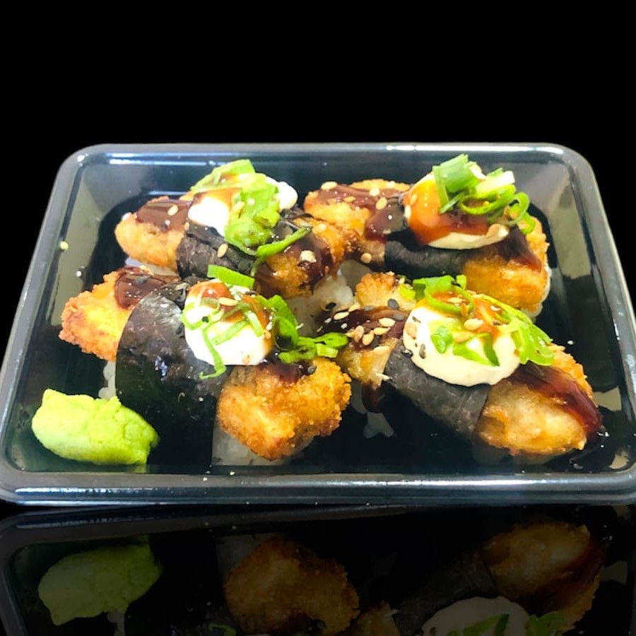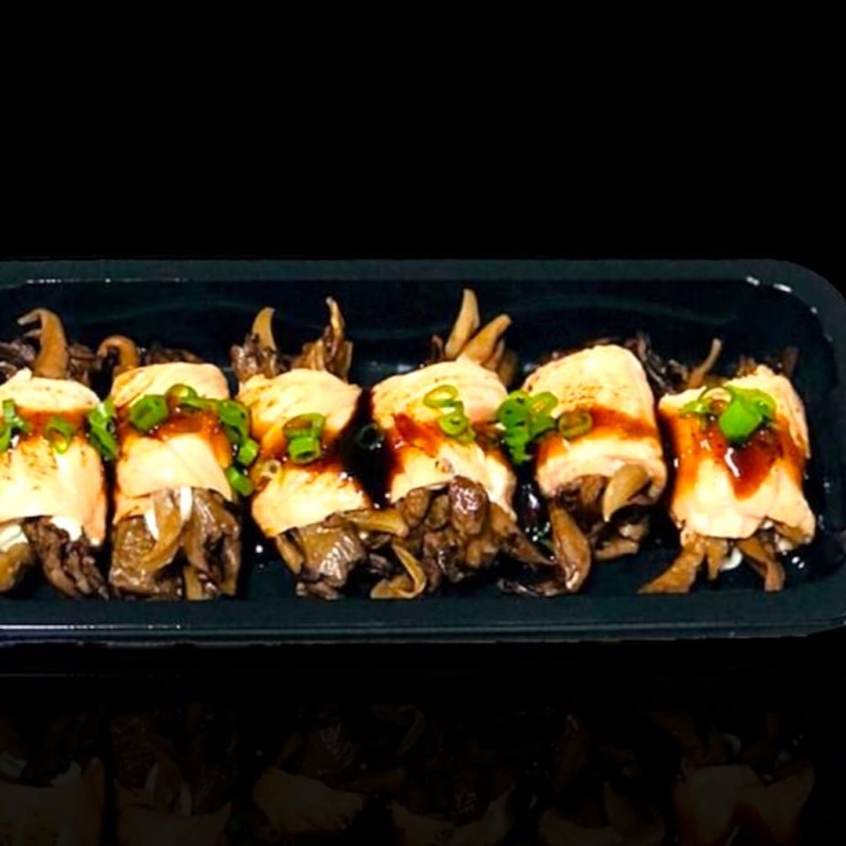 Descubra o nosso Shake Zushi: uma obra-prima da culinária japonesa, apresentando seis peças luxuosas. Cada peça é um enroladinho delicado de salmão fresco, recheado com shimeji cuidadosamente preparado e um toque suave de cream cheese, finalizado com um glaze doce e salgado de tarê. Cada mordida é polvilhada com gergelim tostado para adicionar uma textura crocante que complementa perfeitamente a suavidade do salmão e o cream cheese. Esta é a perfeição em forma de sushi, disponível agora em nossa promoção especial.