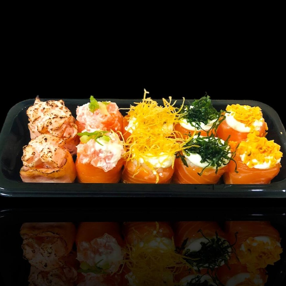 2 gunkan maçaricado 2 gunkan sakmão 2 gunkan crispy batata 2 gunkan crispy 2 gunkan Doritos