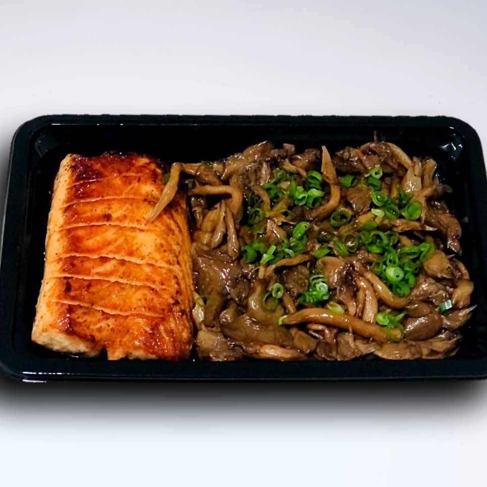 File de salmão frito com shimeji