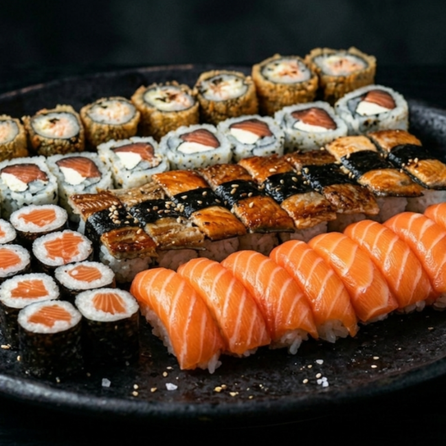 Combinado de sushis fritos e grelhados, especial pra quem ainda não gosta de sushis crú.