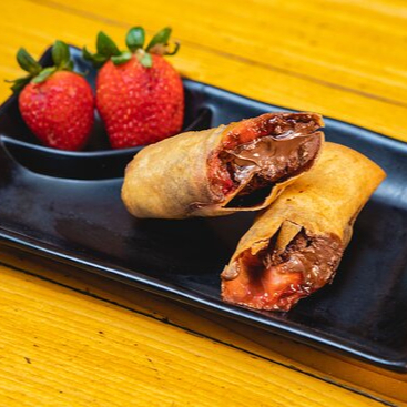 Delicie-se com nosso harumaki de chocolate com morango, irresistível ..