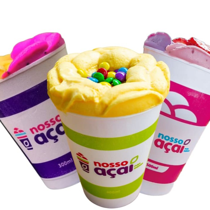 Escolha o Tamanho de seu copo Saboroso! 3 Sabores de Frozen + 6 opções frutas + 12 opções complementos no melhor copo! Os mais de 20 Frozen para escolher. Os Frozens são produzidos com a Polpa da Fruta, por isso são mais saudáveis e saborosos. É uma delícia a cada colherada! As frutas são muito frescas e complementos selecionados. **Os itens escolhidos farão parte da montagem do copo e distribuído