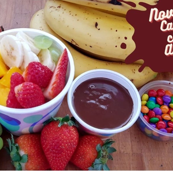 Uma Sensacional combinação , Fondue de Frutas, com 2 Caldas à sua escolha: Cacau com Avelã e/ou Blend de Chocolate ao Leite e Chocolate Meio Amargo, 4 Frutas e mais o Topping para deixar ainda mais gostoso este momento! São 200ml de Calda, podendo escolher a Sensacional (Calda de Cacau com Avelã) e a Fantástica (Blend de Chocolate ao Leite e Meio Amargo). Frutas - temos 6 variedades de frutas par